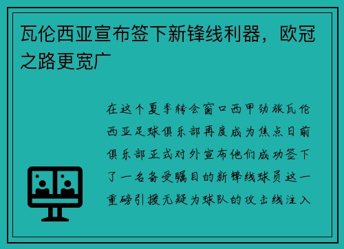 瓦伦西亚宣布签下新锋线利器,欧冠之路更宽广