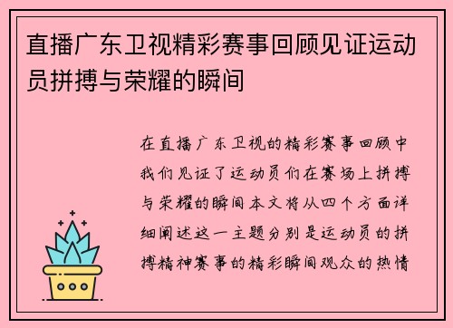 直播广东卫视精彩赛事回顾见证运动员拼搏与荣耀的瞬间