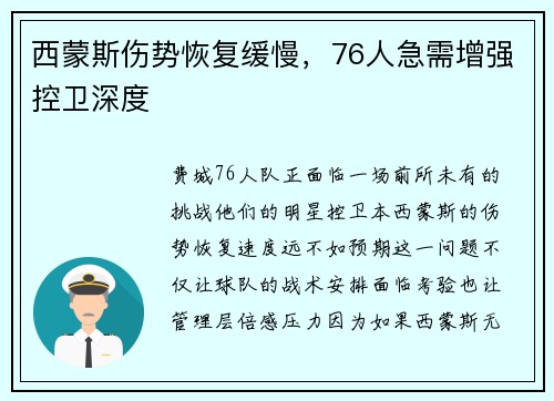 西蒙斯伤势恢复缓慢,76人急需增强控卫深度
