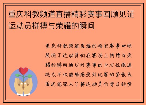 重庆科教频道直播精彩赛事回顾见证运动员拼搏与荣耀的瞬间
