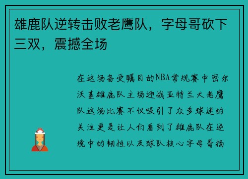 雄鹿队逆转击败老鹰队,字母哥砍下三双,震撼全场