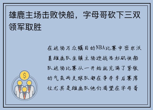 雄鹿主场击败快船,字母哥砍下三双领军取胜